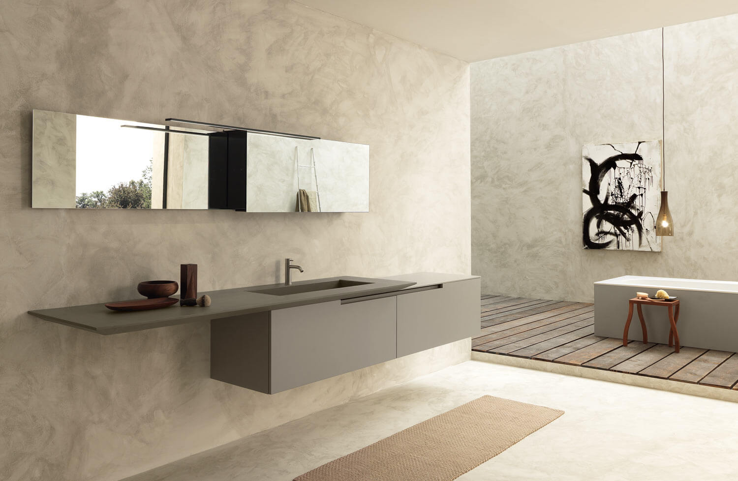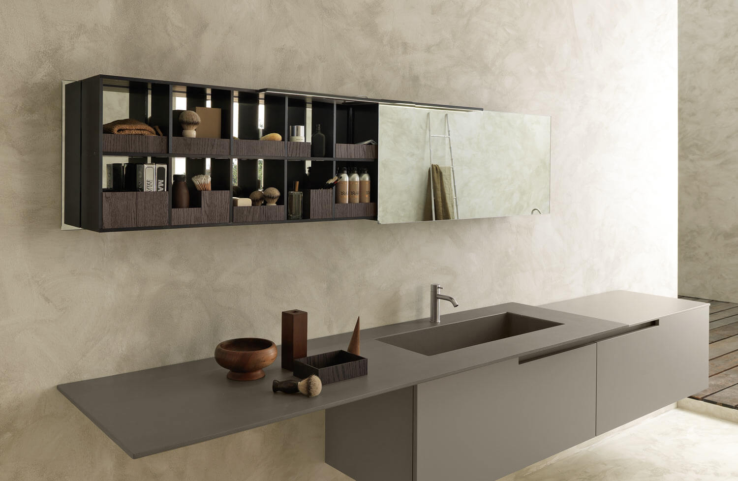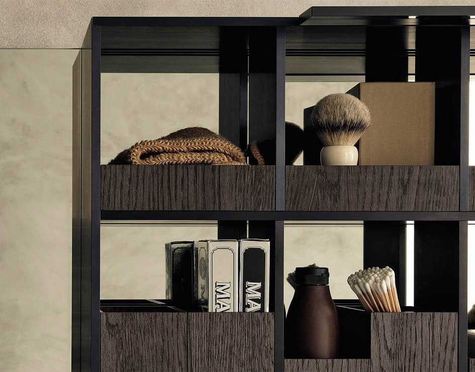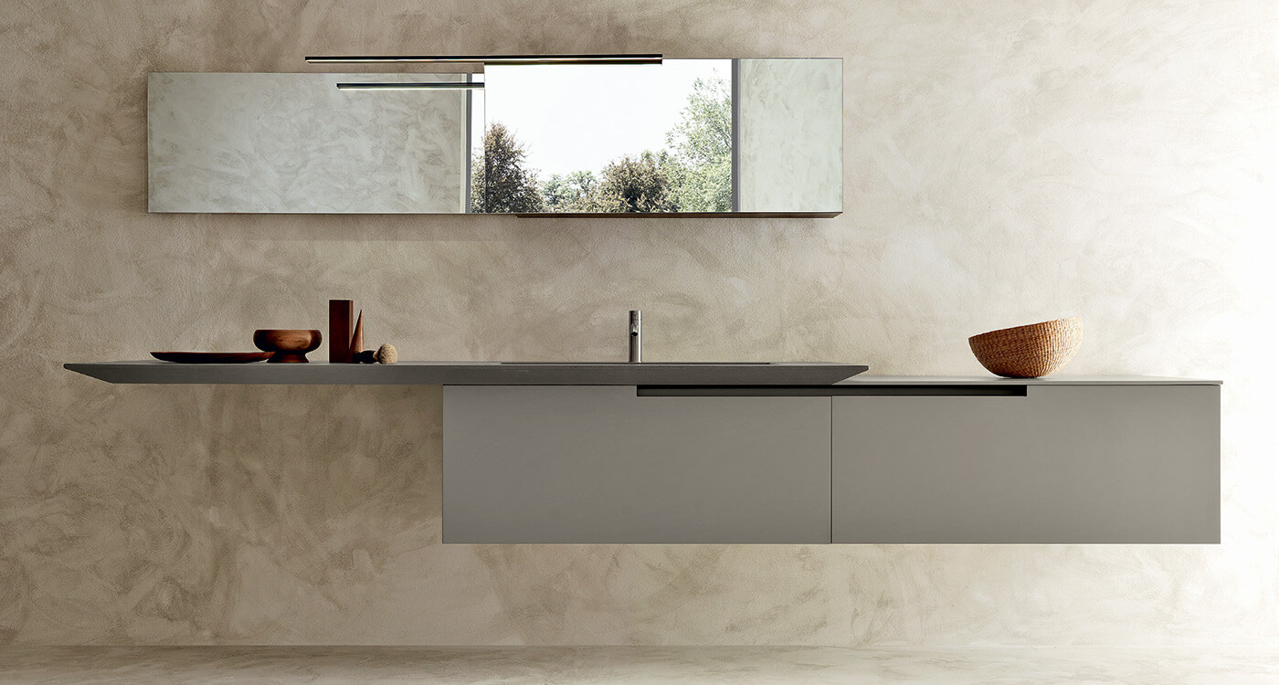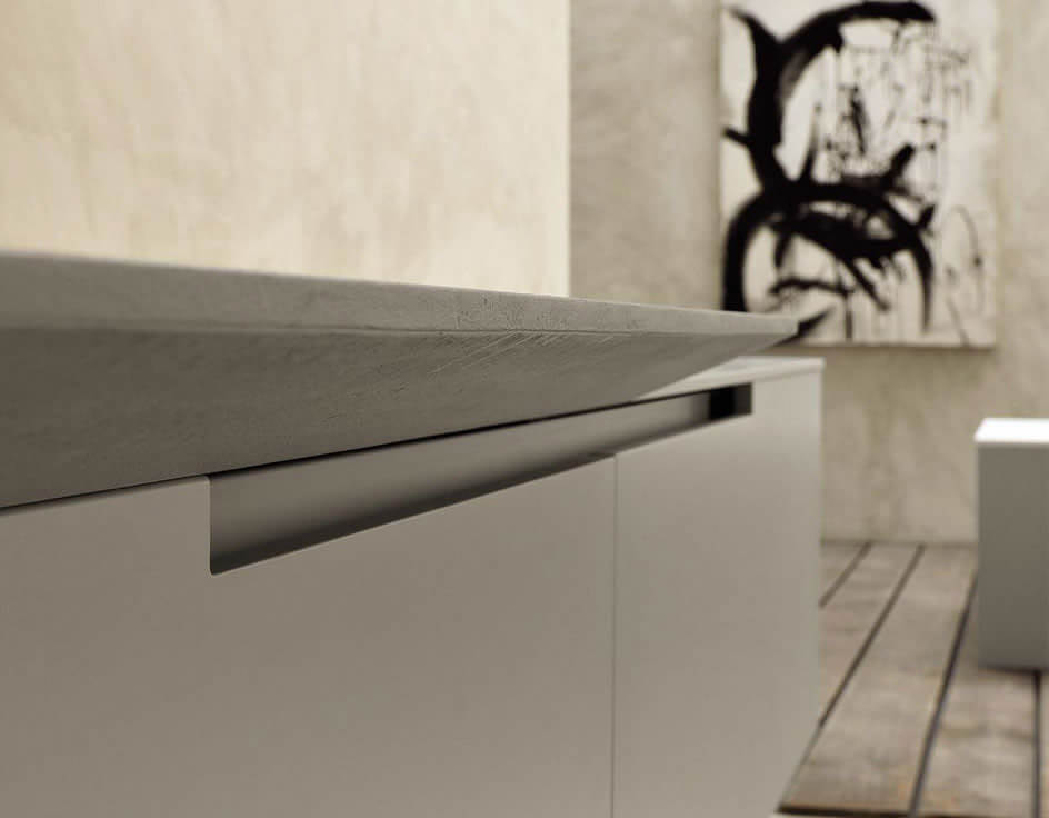 Moon Grass, farklı yüzeylerde bir dizi taban ve sütun içerir. Kapak kalınlıkları 20 mm ve köşe pahları 2 mm kalınlığa sahiptir. Kapakların ve çekmecelerin tutamağın olmaması, yapıya tutturulmuş bir metal profil ile kolayca açılmasını sağlar.